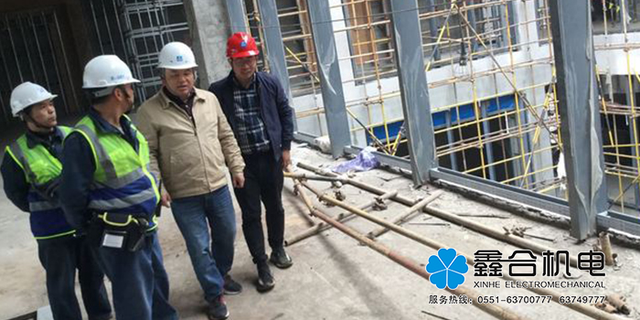 2019年4月10日,安徽鑫合機電總經理曹克忠至上海市奉賢區上海金融基地酒店項目考察及現場指導工作,三局項目經理李志佳、鑫合機電項目經理湯大海及張友學陪同參觀考察。